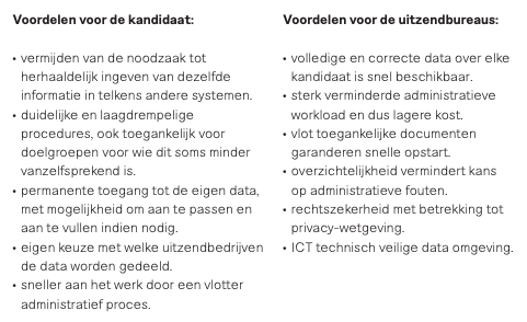 Een mooi initiatief hoe dat wel kan worden gerealiseerd is WorkID. Dit is een initiatief vanuit de Belgische uitzenders, waarbij de werkende zelf in controle is welke gegevens worden gedeeld met welke uitzender. Of, om het in de woorden van WorkID zelf te zeggen: "WorkID is een door de uitzendsector aangeboden platform dat kandidaten op een eenvoudige manier de kans biedt om relevante persoonlijke gegevens ter beschikking te stellen aan door henzelf geselecteerde uitzendbureaus." De voordelen voor zowel kandidaat als uitzender (bron: deze PDF):