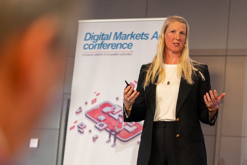 Tijdens de conferentie benadrukte DMA-oprichter en Eurocommissaris voor Mededinging Margrethe Vestager het belang van een gelijk speelveld. Volgens haar bevordert goede wet- en regelgeving innovatie.
