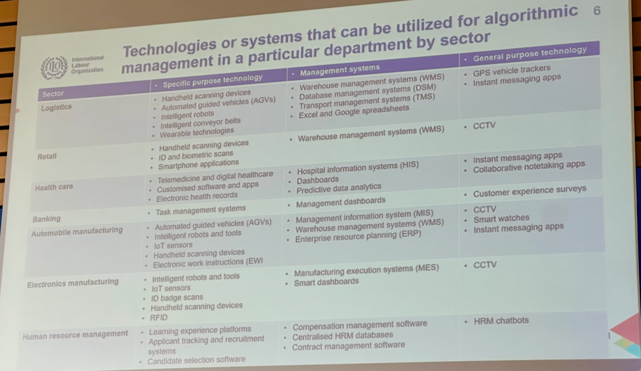 The platform economy is often seen as the ‘nursery’ or ‘sandbox’ of the labour market, where these technologies like algorithmic management are developed and tested (which raises important ethical issues) on workers. To then be applied to the wider labour market. Something that, by the way, is in line with the current development of legislation like the Platformwork Directive, which everyone understands that the passages on algorithmic management should apply not only to a specific group of platform workers, but to all workers.