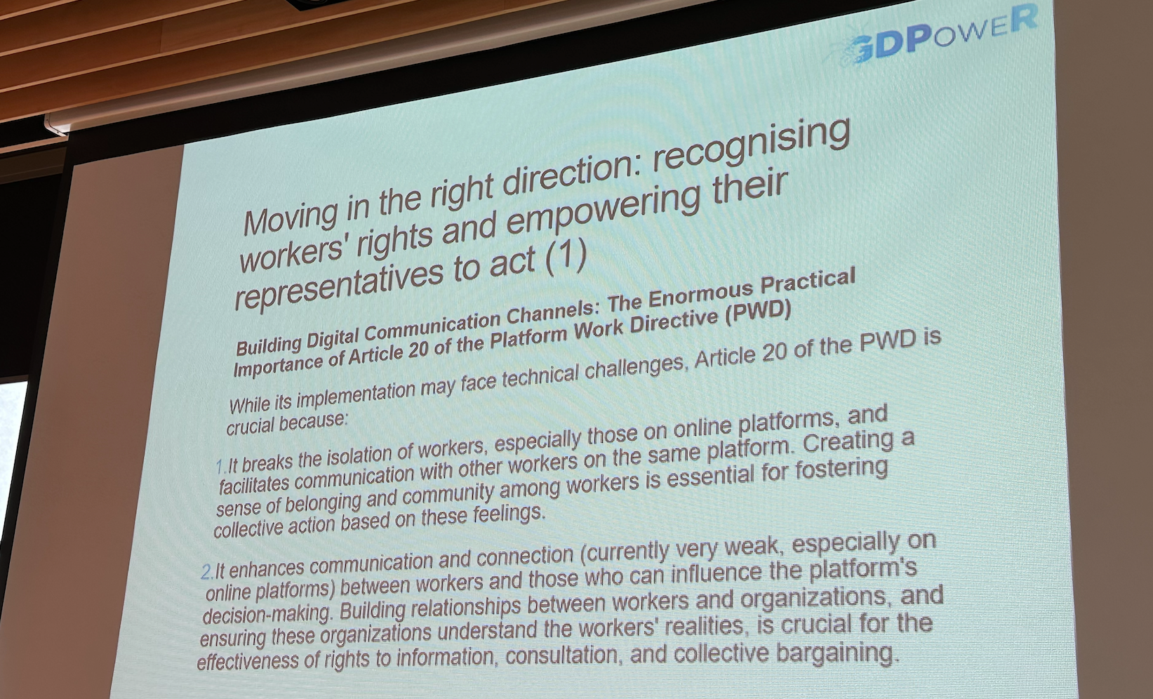 The conference presented several examples of how ‘worker representation’ in digital technology and AI can be organised.