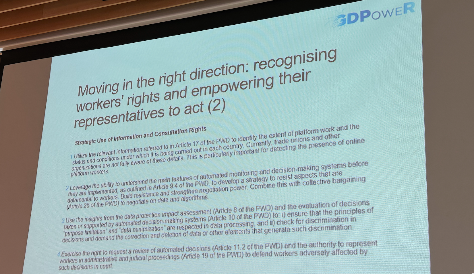 And although GDPR is an individual and not a collective right, the GDPoweR project shows that there is no reason not to use it for collective activities. Something I also described earlier in the blog and podcast ‘knowledge is power, even in the platform economy’ following an interview with James Farrar, founder of the Worker Info Exchange. All the cases his modern union brought against Uber, among others, were won on the basis of existing regulations. Something policymakers and unions should consider a lot more.